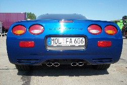 In solchen Faellen empfiehlt es sich, den Gasfuss anzuheben und mit der exakten Servolenkung die Corvette wieder in die gewuenschete Bahn zu lenken. Bei den Testfahrten gerieten wir nicht einmal ob dieses fordernden Fahrverhaltens der neuen Corvette in respektvolles Verzuecken. Ein echter Sportwagen verlangt eben auch vom Fahrer Kondition und Verantwortungsbewusstsein. Im Alltagsverkehr dagegen ist die Corvette zahm wie ein Corsa. Gutmuetig und ruckfrei schleicht sie durch enge Gassen, zuckelt gemuetlich auf der Landstraße und gallopiert genuesslich auf der Autobahn.